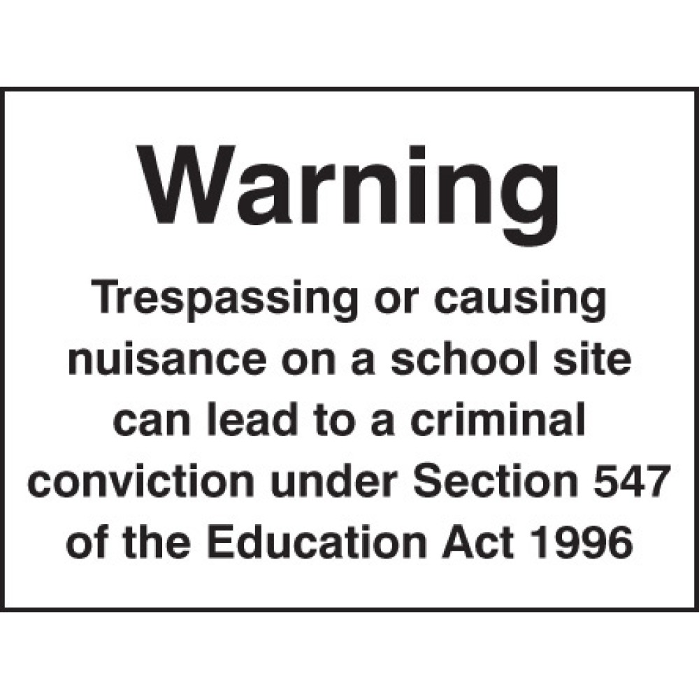 Warning - Trespassing Or Causing Nuisance On a School Site