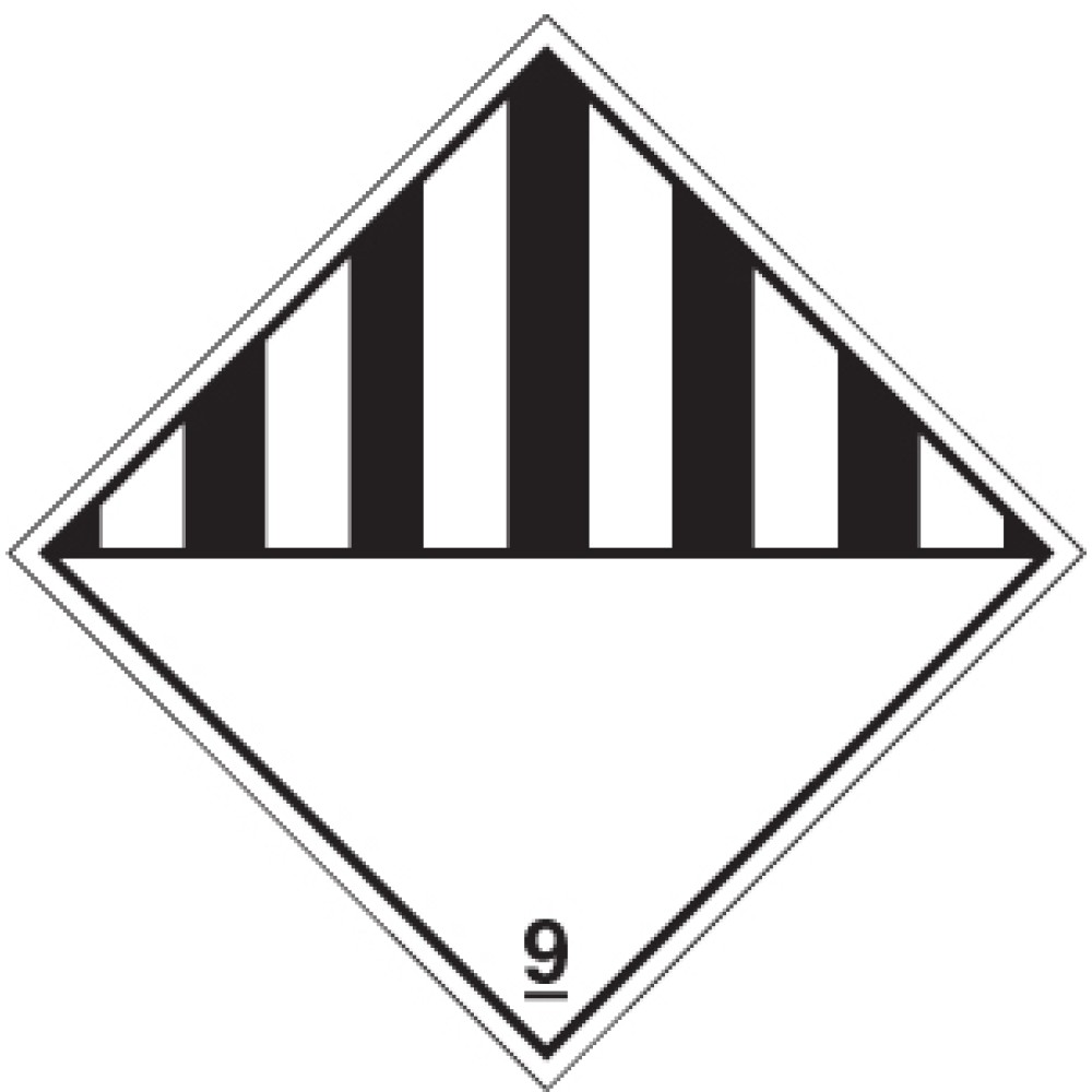 UN regulations (including ADR, IATA and IMDG) stipulate that all dangerous goods must be clearly identified. Diamonds (other than those of class 7 radioactive status) and the insert of any text (other than UN class number) below the symbol is to be confined to particulars indicating the nature of the risk and precautions to be followed during handling of them. Text to signify the nature of the risk is optional.