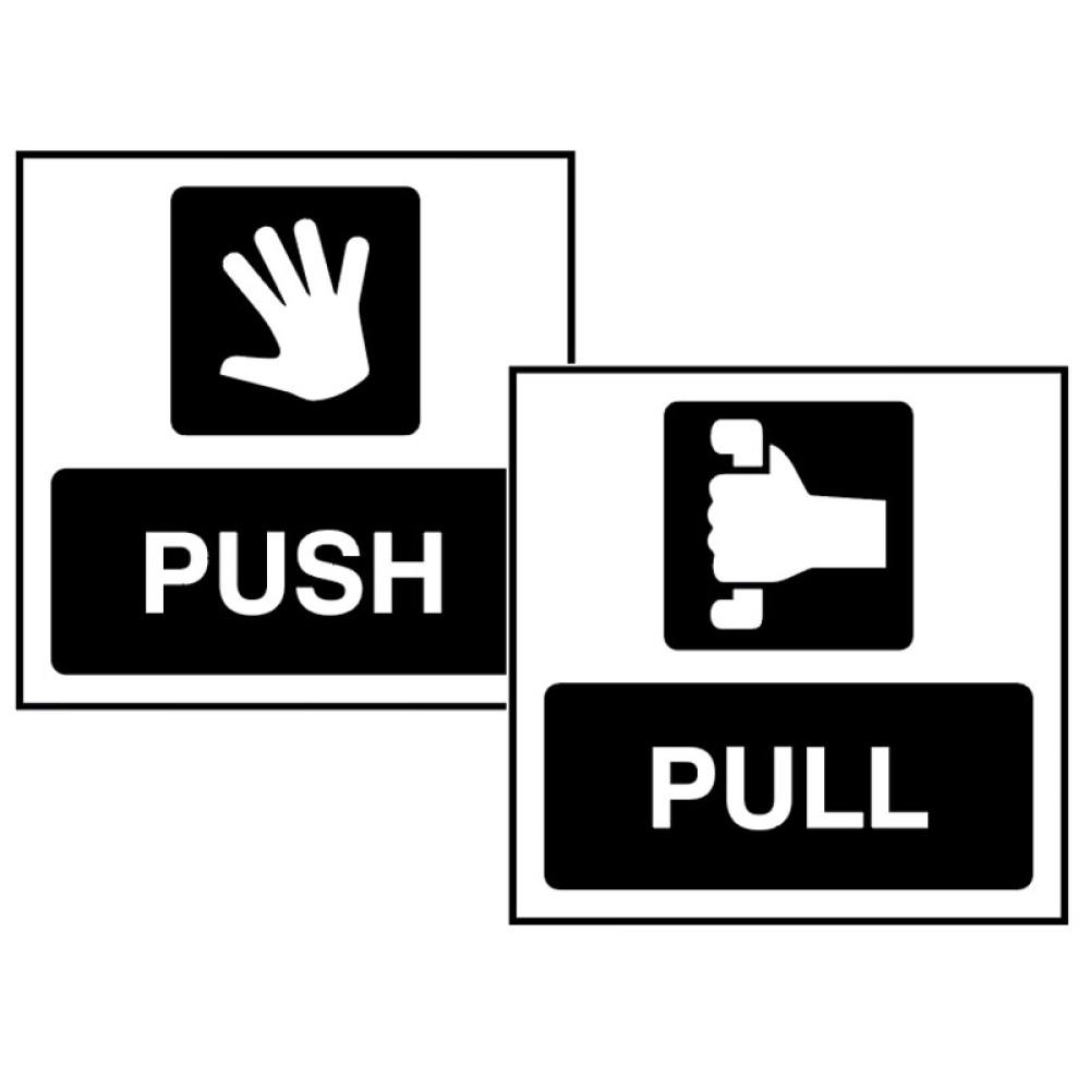 This double sided window sticker highlights whether a door should be pushed or pulled.