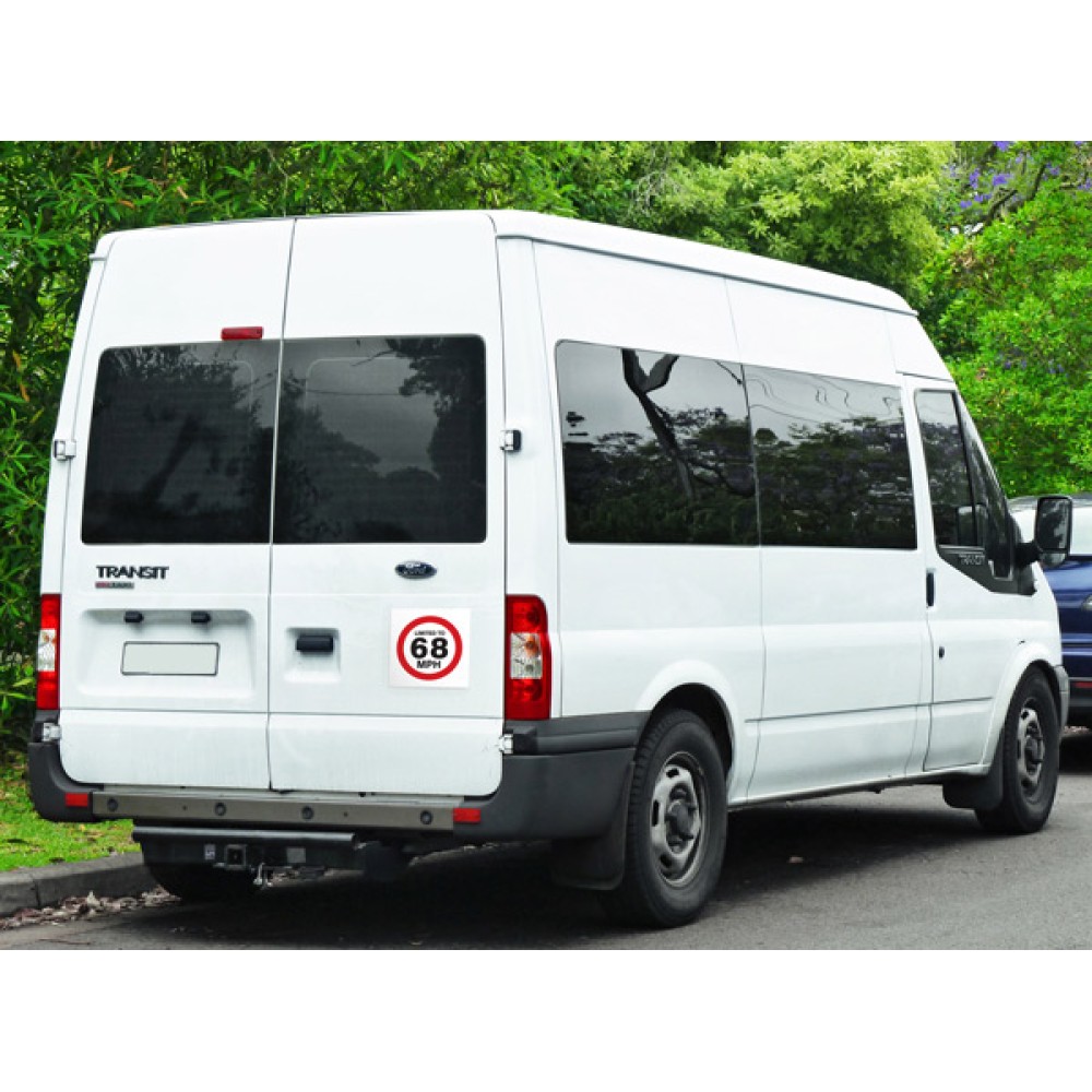Speed restriction or limitation signs can be applied to any van, lorry or coach with a speed limiter fitted to them to inform other road users of their restrictions.