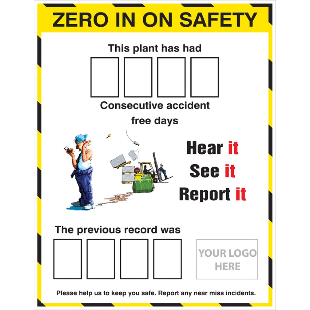 • Zero in On Safety AccIdent Board with Logo & 2 Sets of Numbers