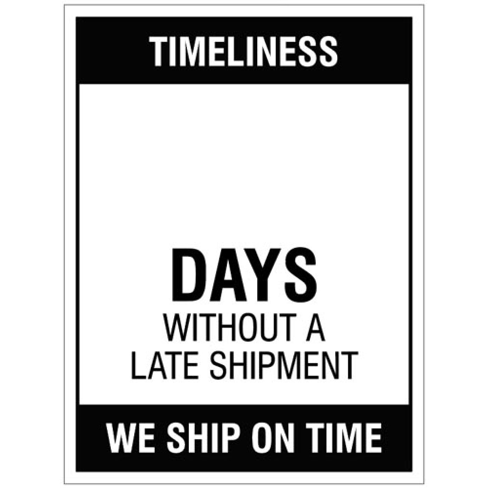 Large Wipe Clean Board "Timeliness (Write Number) Days without a Late Shipment"