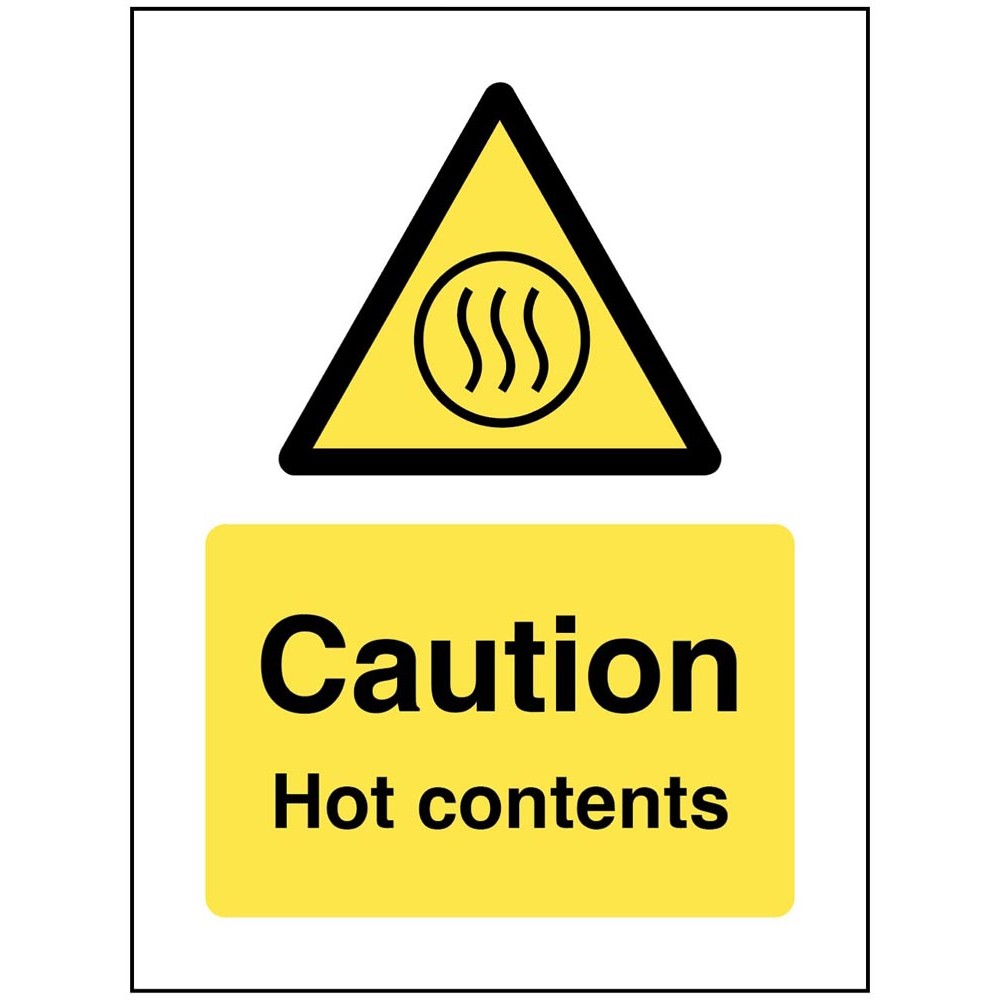 This warning safety sign advises viewers that the contents of the designated area / item is hot.