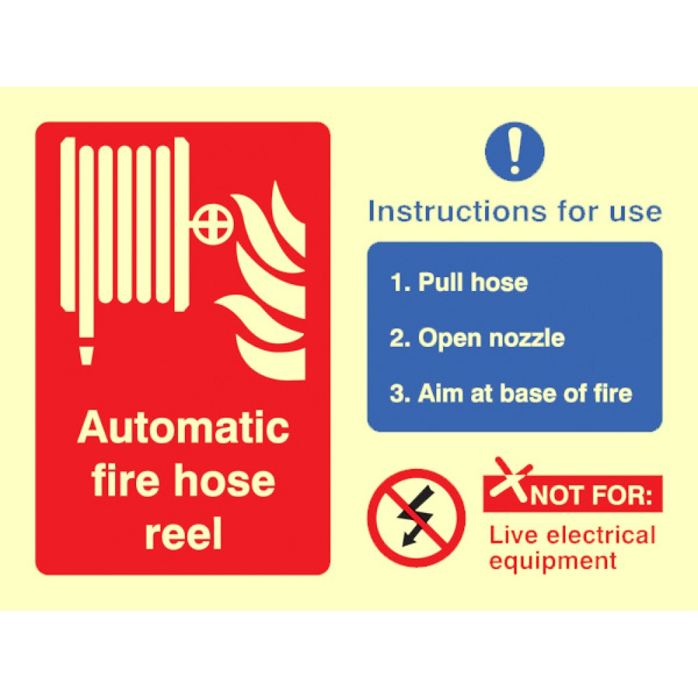 This fire safety sign not only instructs readers how to properly use a fire safety hose in an emergency, but also highlights the location of the fire safety hose. Under the Regulatory Reform - Fire Safety Order 2005 any non-automatic fire fighting equipment should be identified with an appropriate sign. The signs should be positioned and designed in accordance with BS EN ISO 722 to ensure maximum levels of comprehension.
