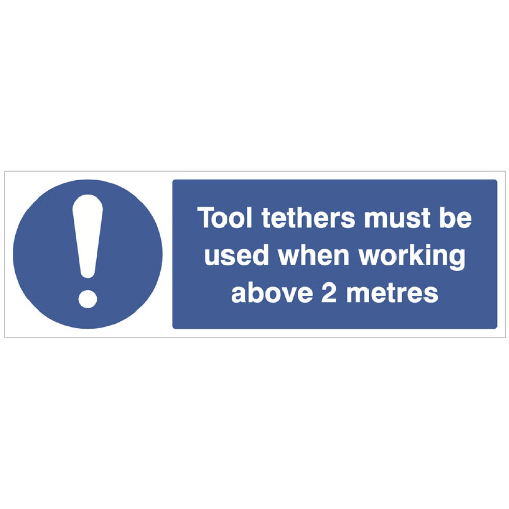 Dropped tools from height is one of the biggest causes of on-site injuries and deaths. Ensuring that tools are tethered whilst at height can prevent them from falling onto workers below - this sign reminds employees to ensure they follow site rules and reduce the risk of injury.