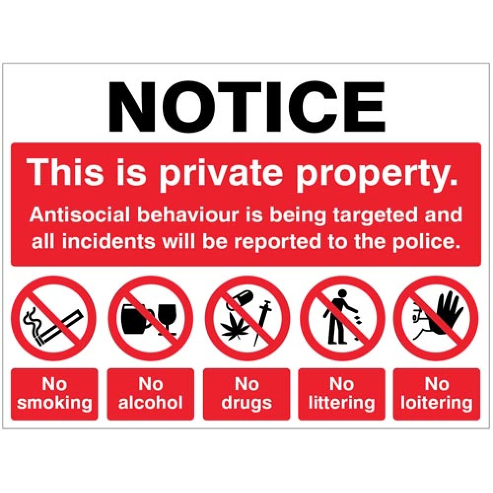 This sign is designed to discourage anti-social behaviour on private property