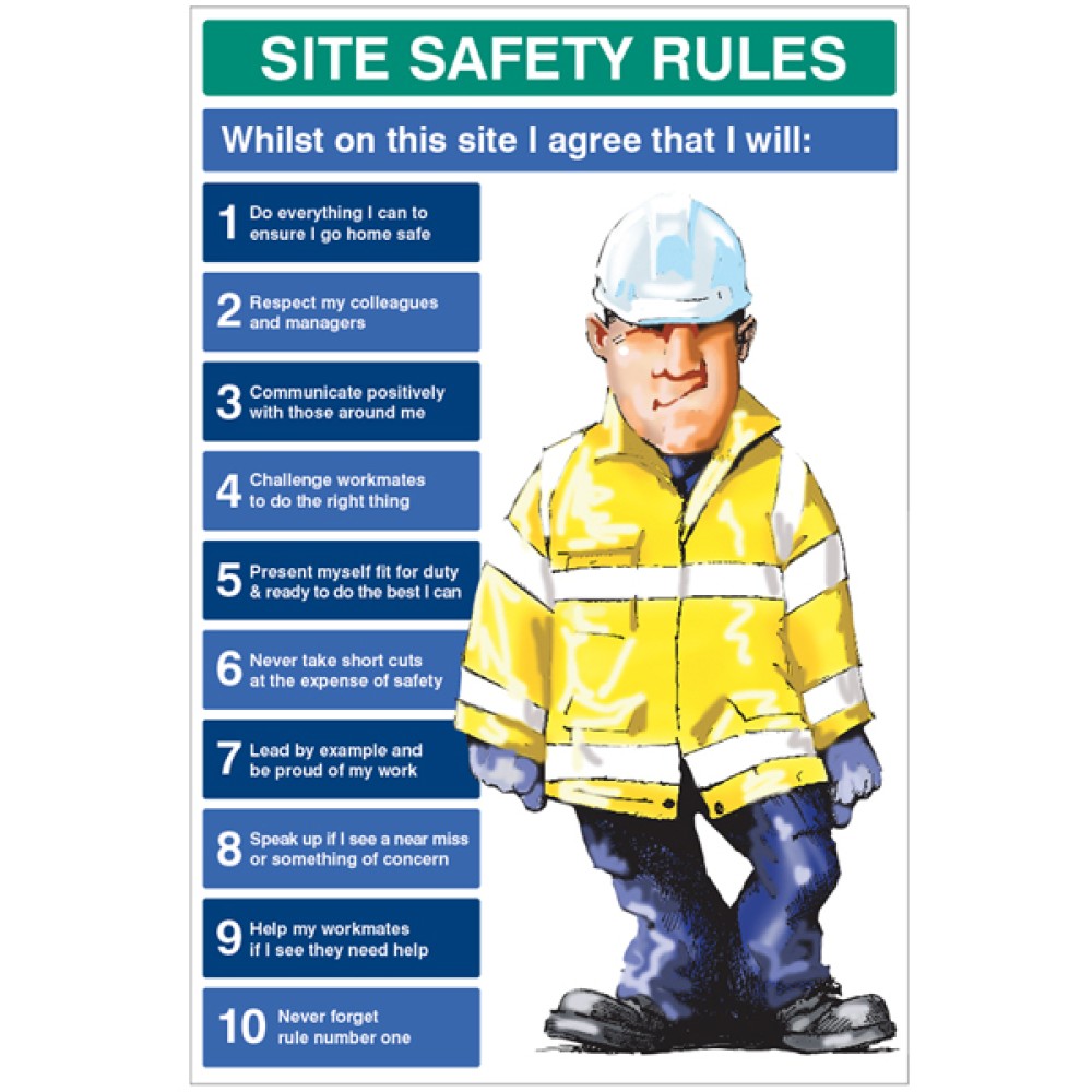 Site safety sign to identify important site safety rules for workers and visitors on site.